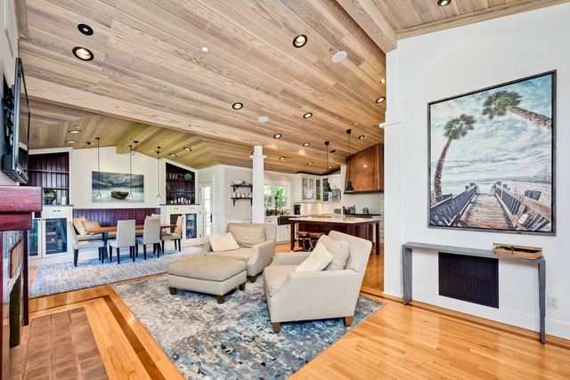 Features include stained redwood ceilings & beams, Dutch french doors, marble countertops & tiling in kitchen and bathrooms. Huge private outdoor living space with dipping pool/hot tub, outdoor BBQ and fire pit. You have your own private, gated entry with a driveway that accommodates 6 cars. The master and one other bedroom with bunk beds is on the second floor. Two bedrooms are on the main level with a queen and a pull out sofa queen. A gourmet kitchen is ready and waiting. Washer and dryer downstairs. Pool deck area has its own bathroom and shower. This is the perfect vacation spot for a romantic getaway, family or a few couples staying together.